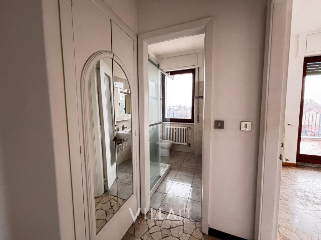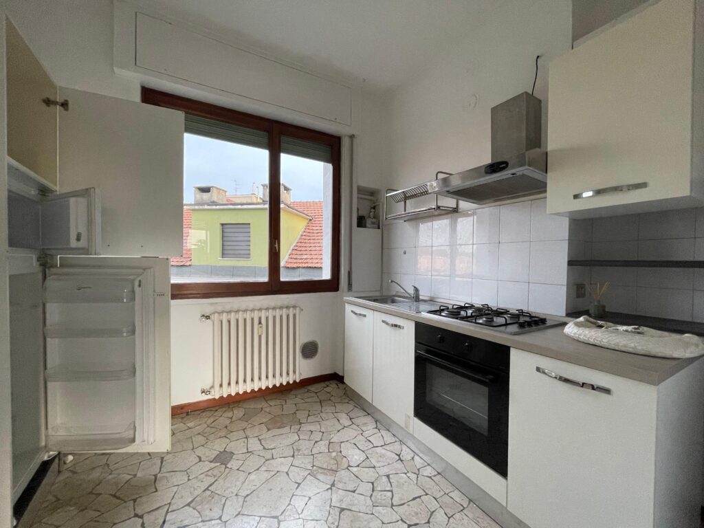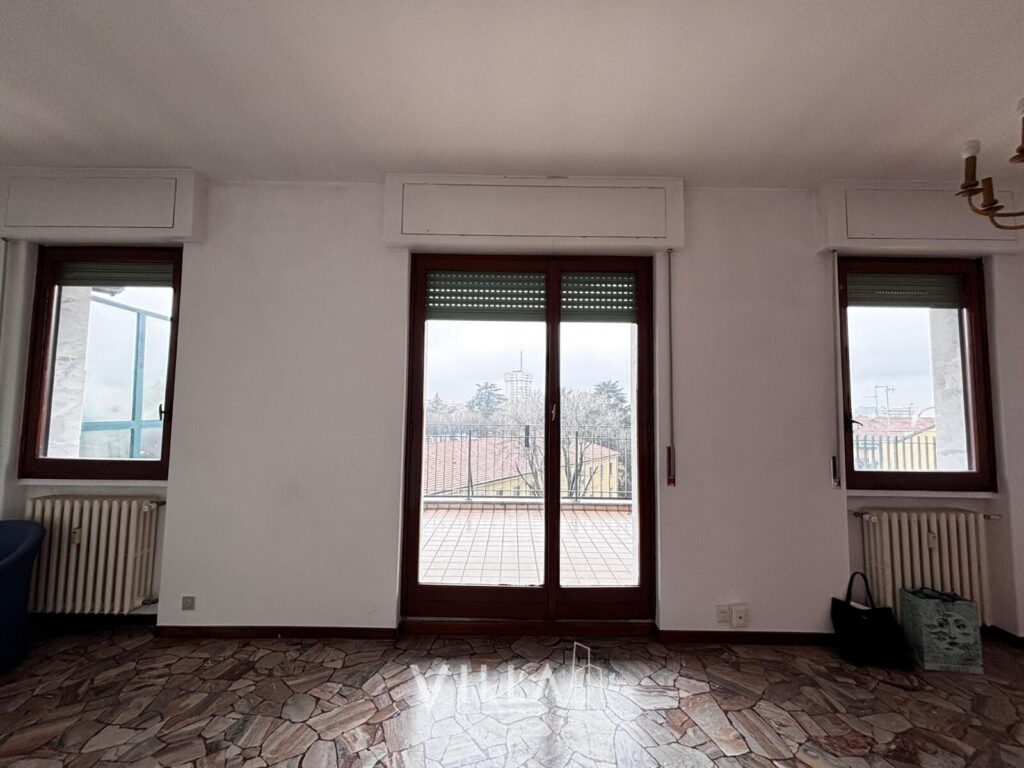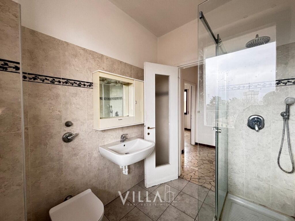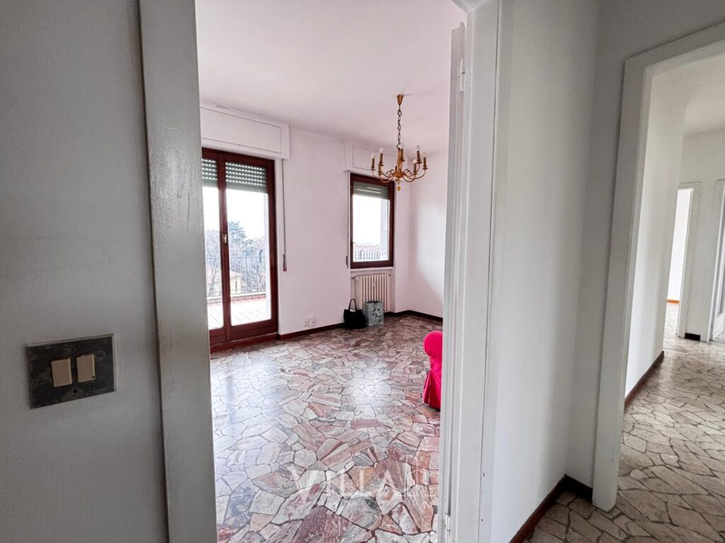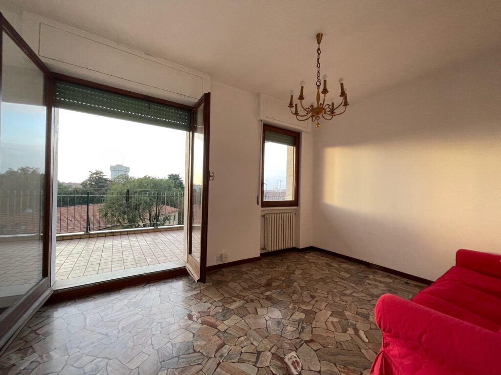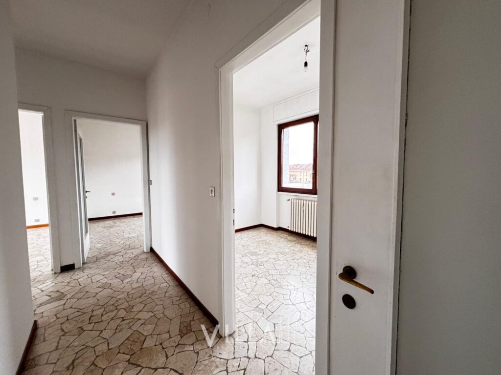 Sito al 6° piano con ascensore, in uno stabile degli anni ’60 con servizio di portineria intera giornata e cortile interno con ricovero bici, il quadrilocale all’ultimo piano con terrazzo, di circa 96 mq, gode di buona manutenzione, ed è così suddiviso: un lungo ingresso dotato di videocitofono – cucina abitabile – zona living con terrazzo – n.3 camere da letto, di cui una con terrazzo di circa 9mq – bagno finestrato con box doccia.